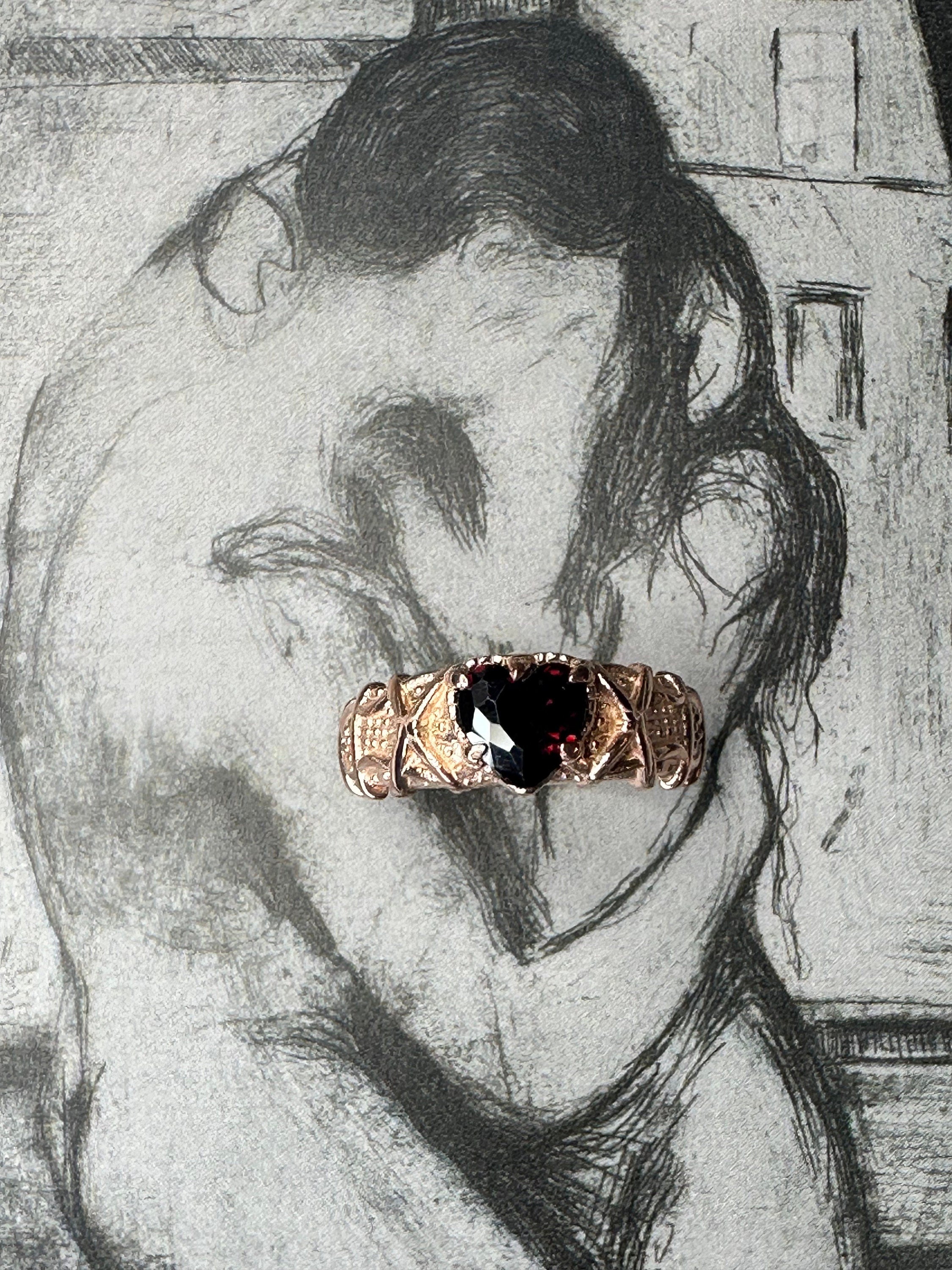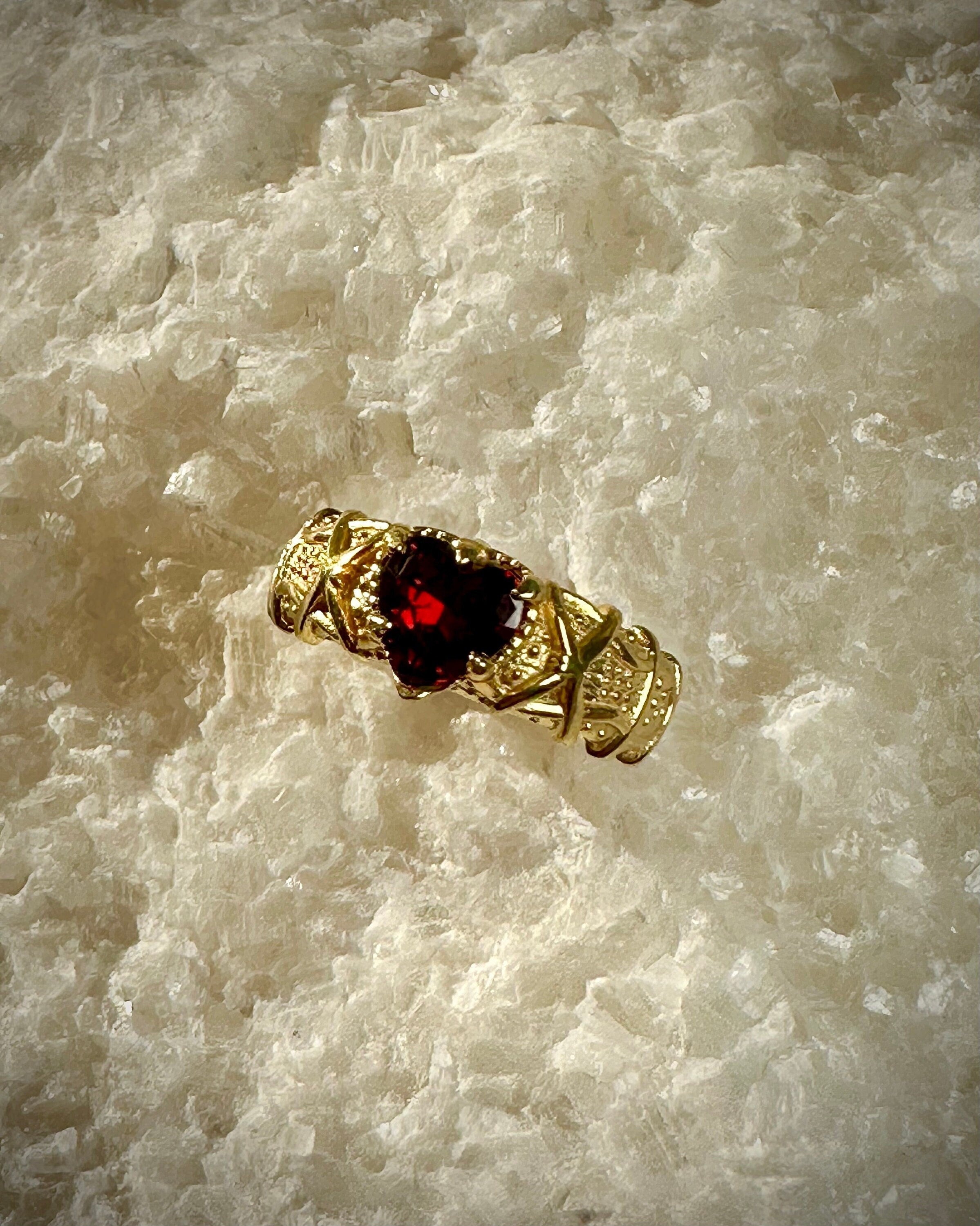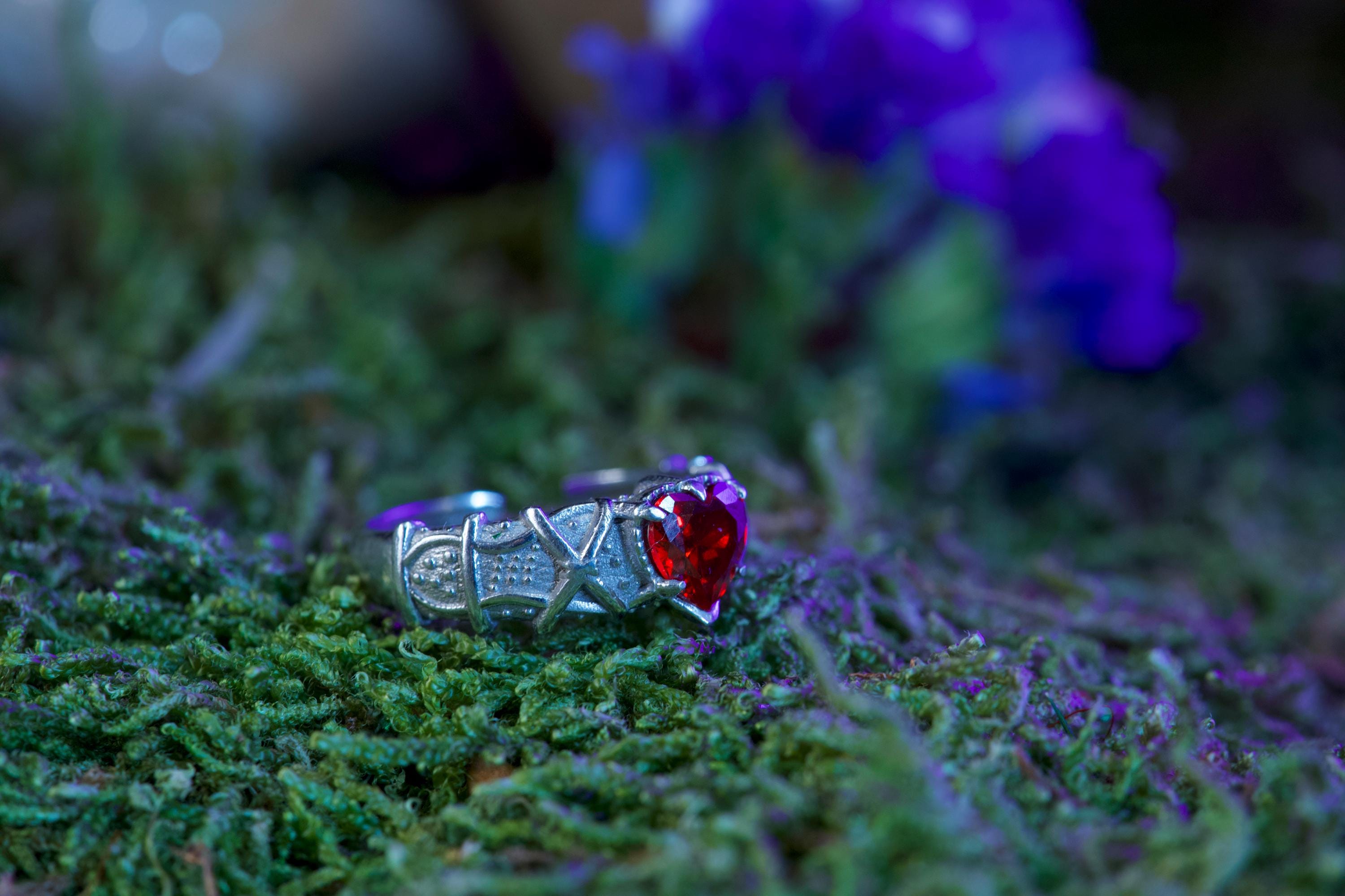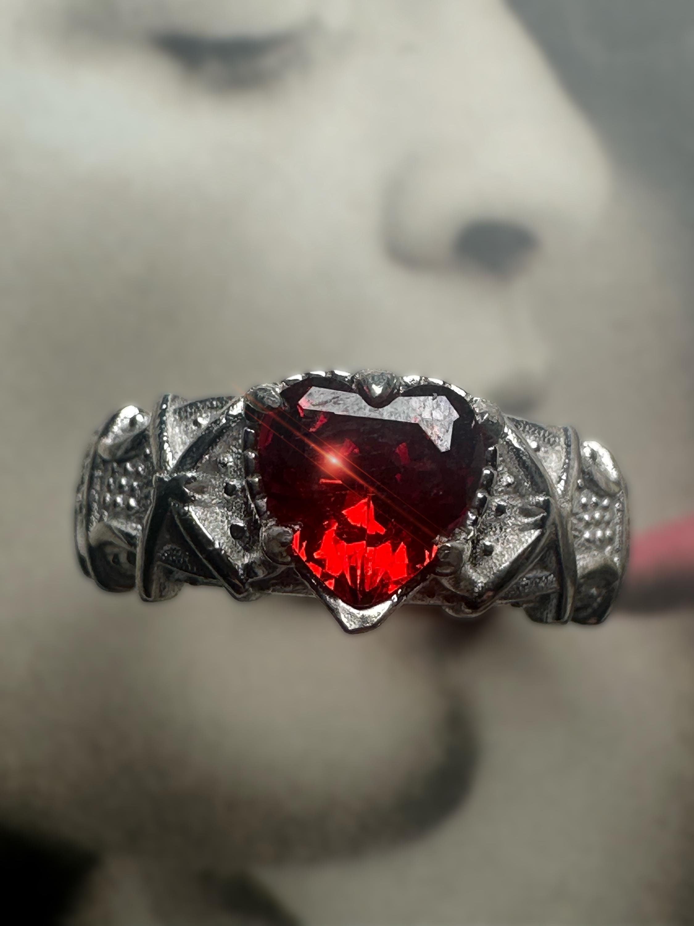 Romantic yet mysterious, the Gothic Red Heart Ring embodies the timeless allure of love with a bold Gothic twist. Handcrafted in 925K sterling silver, the ring features intricate filigree work inspired by medieval Gothic architecture, giving it an air of both delicacy and strength.