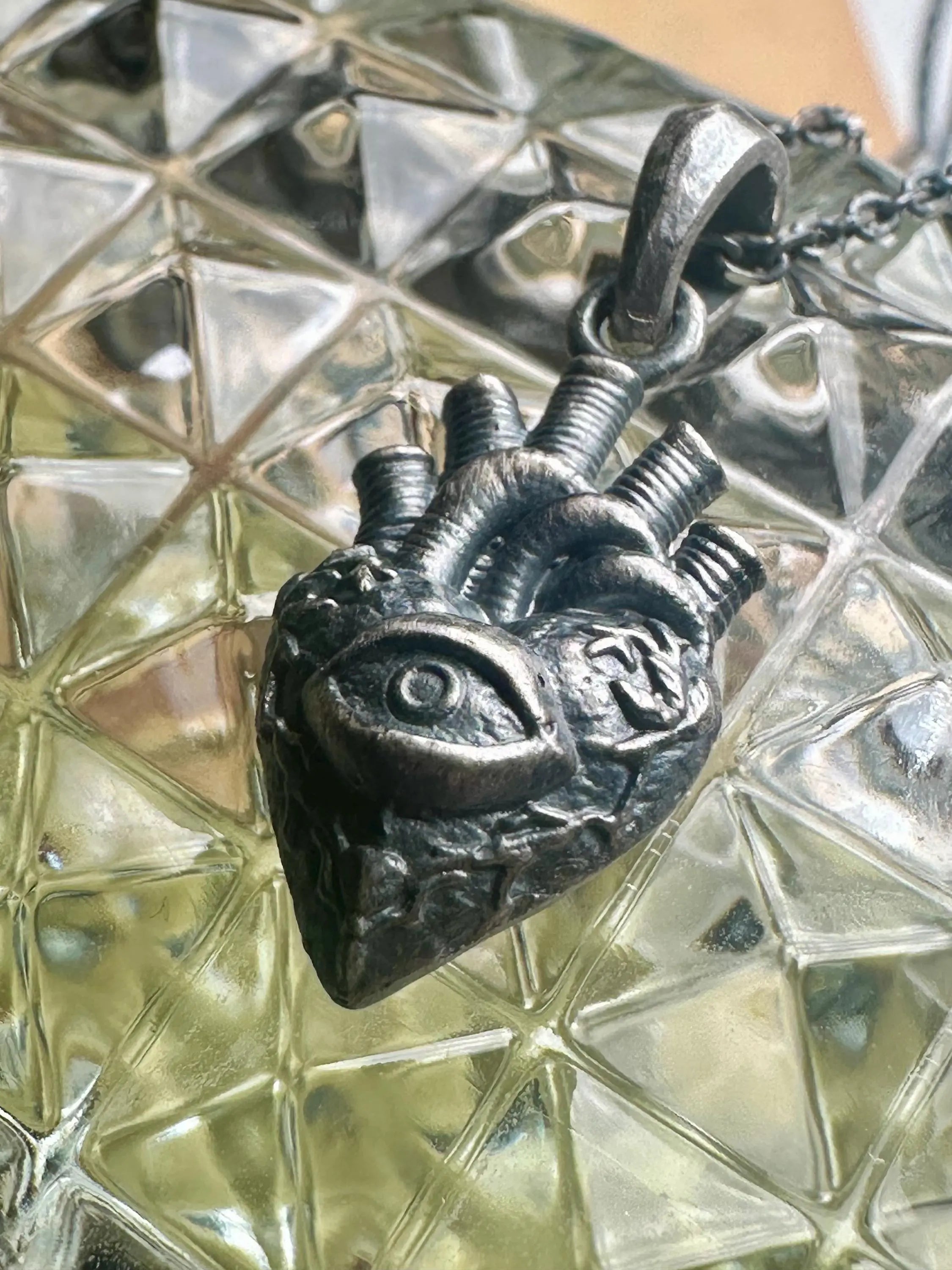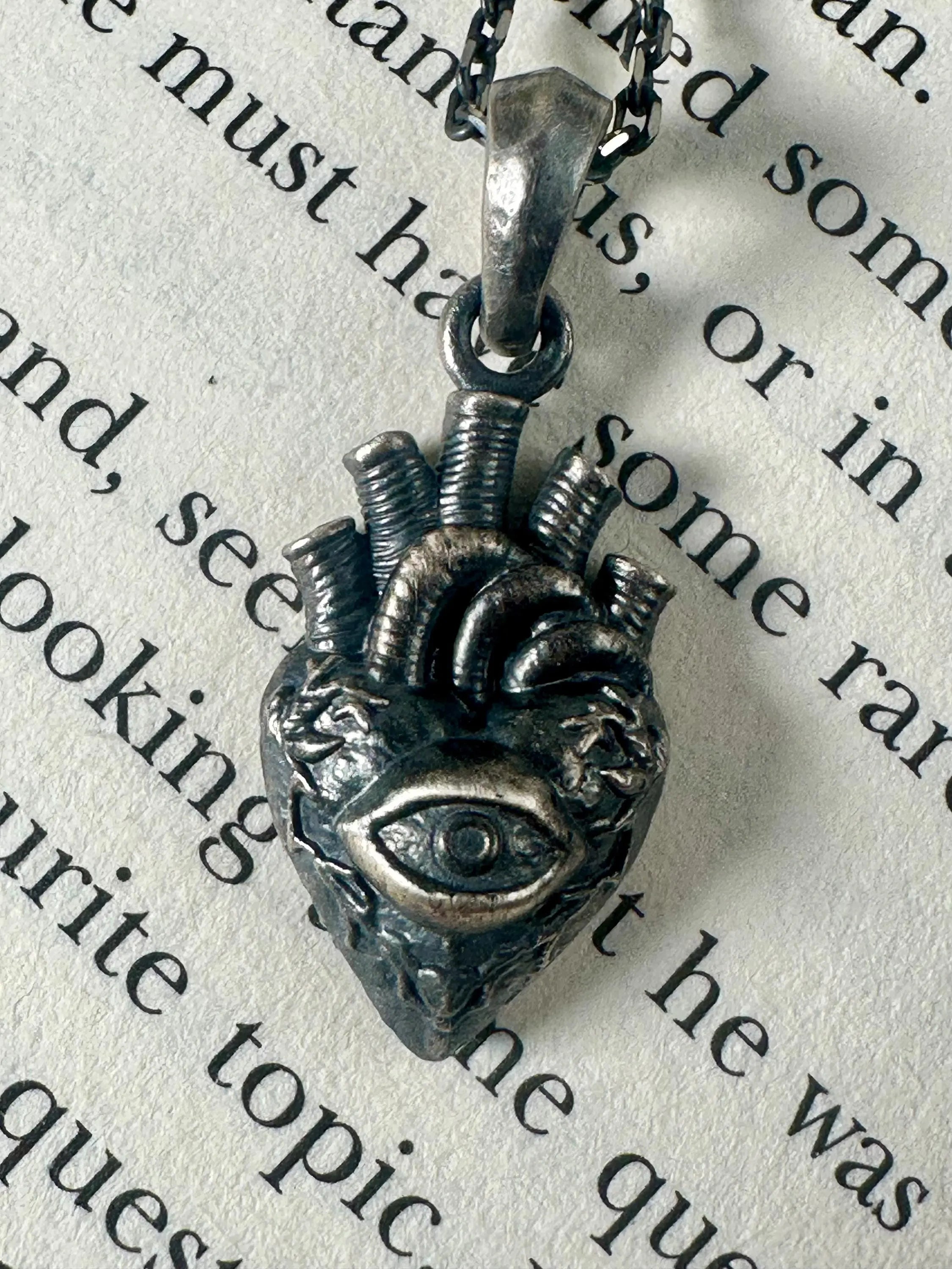 Every curve of the anatomic heart is alive with detail, crowned by arteries like sacred pathways, and centered with the all-seeing eye: a reminder that your heart knows truths the mind may doubt. Wear it as a symbol of protection against ill will, or as a statement of inner vision—seeing the world through the wisdom of your own heart.